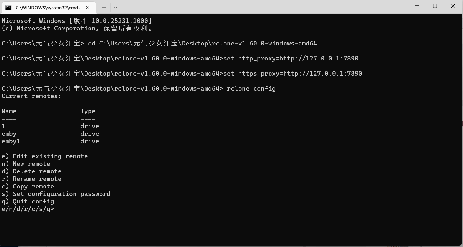 2然后 cd C:\Users\元气少女江宝\Desktop\rclone-v1.60.0-windows-amd64