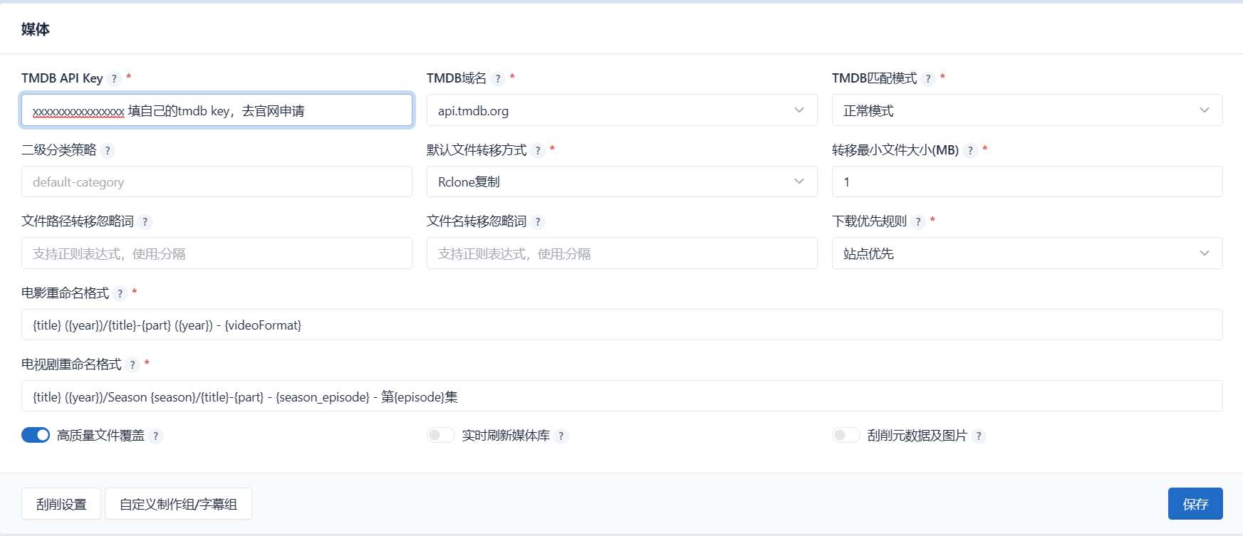 1.只上传视频,只需配置好rclone config,名为NASTOOL。如果要刮削视频的源信息,则需挂载NASTOOL到本地盘~