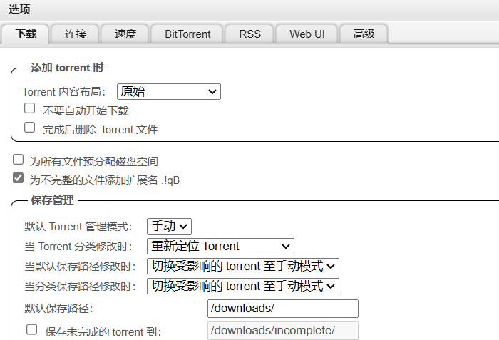 1.你的下载器选择qb的话需要打开 为不完整文件加扩展名(不要问为什么,因为我也不知道)
