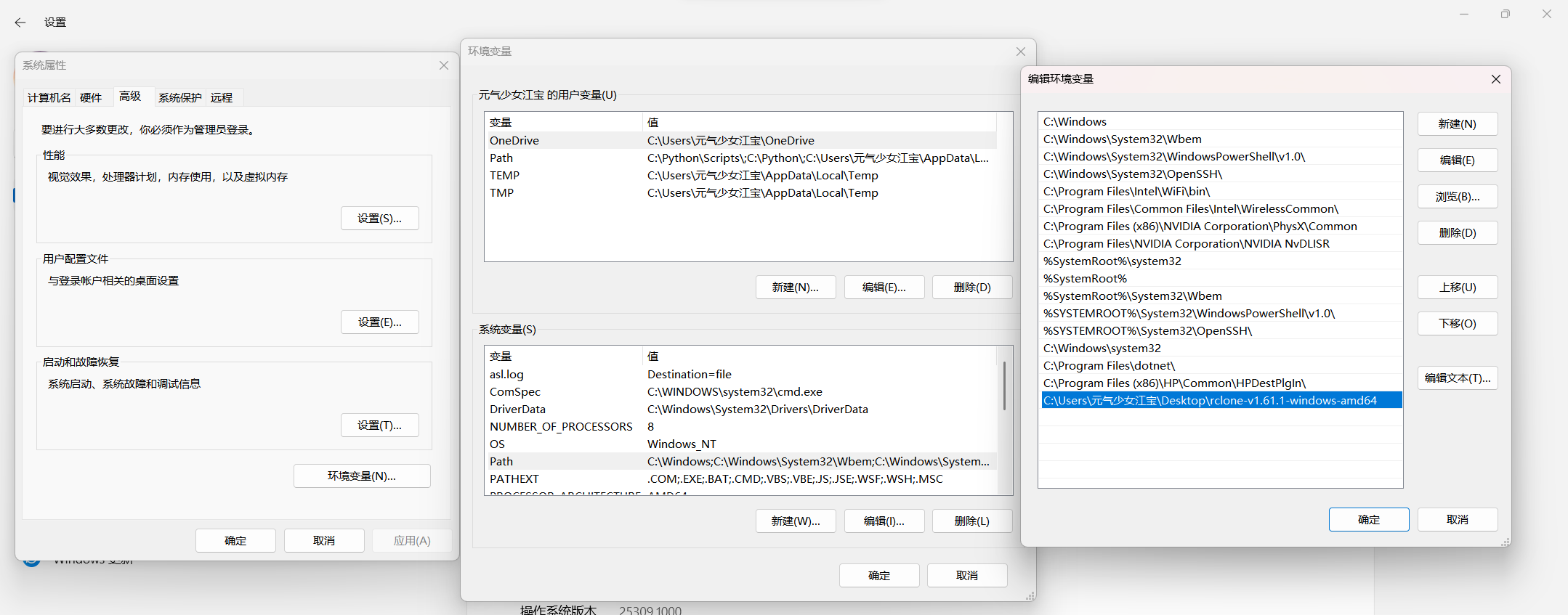 在此之前可能要把clone文件添加到系统环境变量里面去,防止在电脑终端打开rclone时报错
